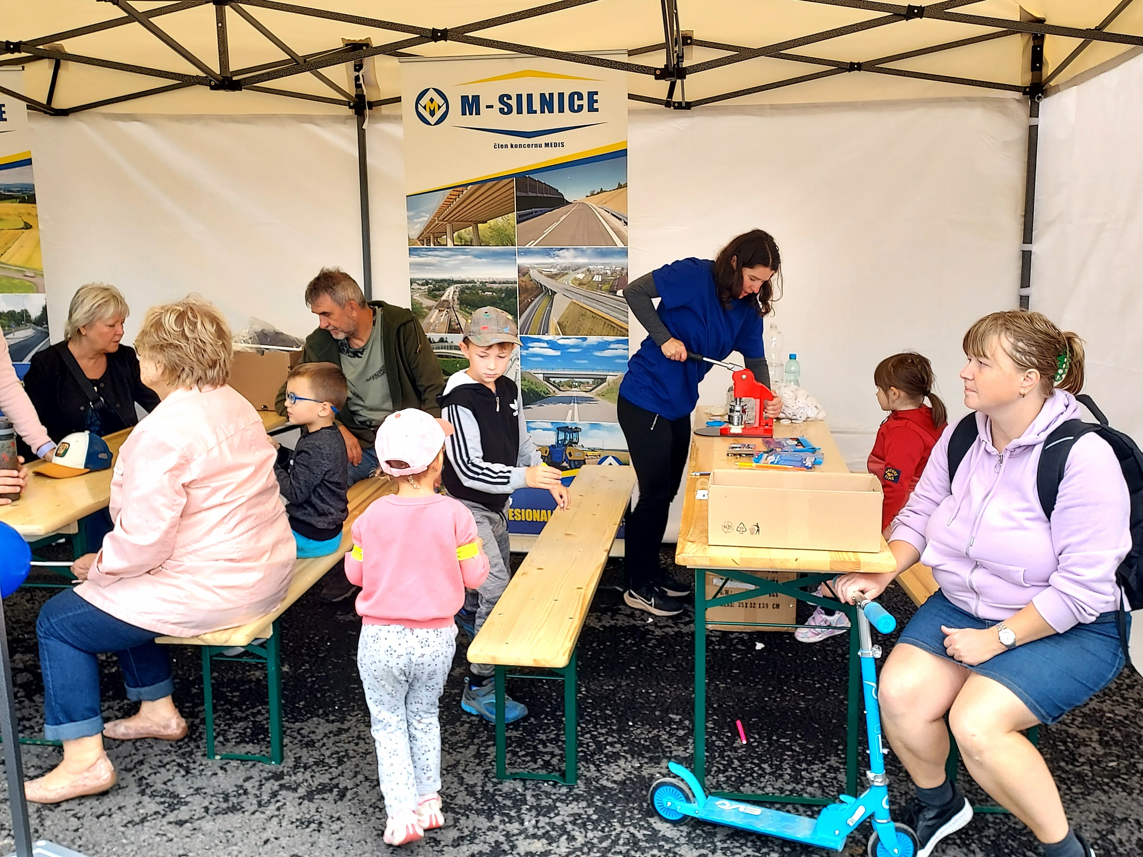 Stánek společnosti M – SILNICE nabízel dětem možnost zhotovit si vlastní odznak – placku – podle zvoleného motivu. Nejenom děti, ale i dospělé zaujala naše vystavená technika, kterou si mohli takříkajíc osahat. Na dotazy jim ochotně odpovídali naši zaměstnanci, kteří mají tuto techniku na starosti. Zpestřením bylo i hudební vystoupení skupiny Love Song Orchestra.